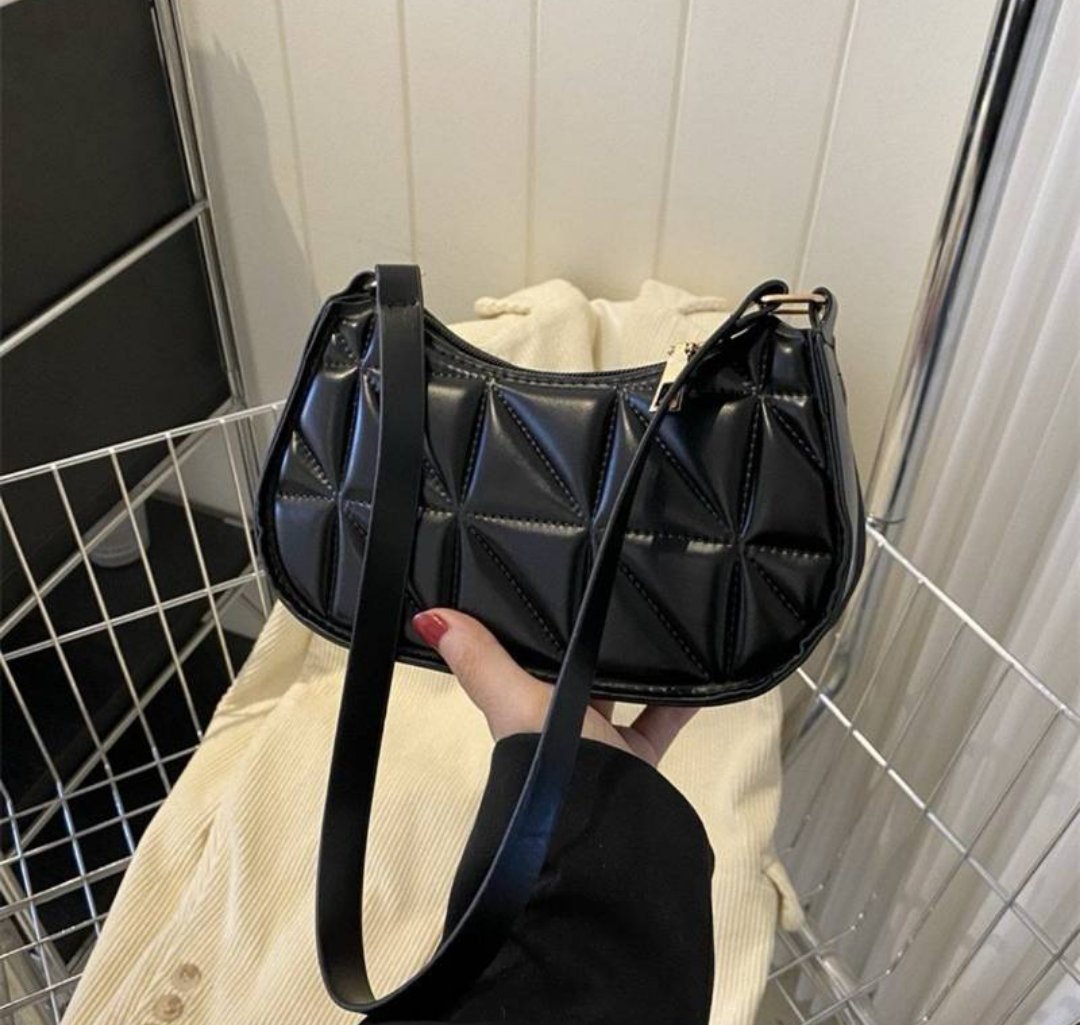 / Glossy Black Geometric Quilted Shoulder Bag