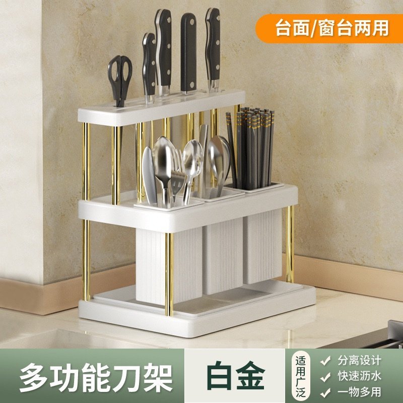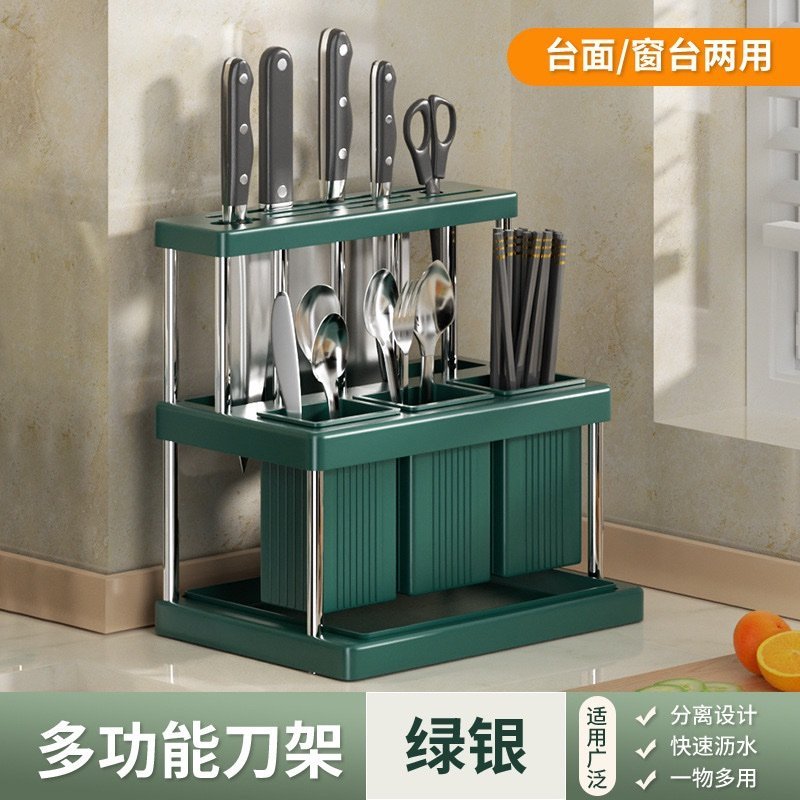 Upgrade your kitchen with this elegant multi-functional knife and utensil organizer in a stylish green-gold finish. Perfectly designed for both countertop and windowsill use, this rack keeps your knives, spoons, forks, chopsticks, and scissors neatly arranged and within easy reach. The independent slot design ensures safety, quick drying, and proper drainage.
