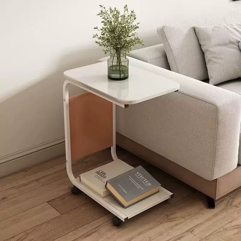 Upgrade your living space with this sleek and functional C-shape side table. Designed to slide easily under sofas and beds, it keeps your essentials within arm’s reach while saving space. The smooth wooden top provides a sturdy surface for drinks, laptops, or décor, while the lower shelf offers extra storage for books and accessories. Built with a strong metal frame and smooth-rolling wheels, it’s easy to move wherever you need it.