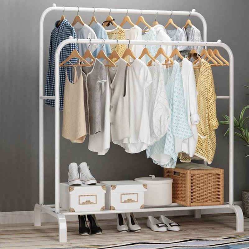 Organize your wardrobe like a pro with this stylish, space-saving clothing rack. Featuring double hanging rails and a bottom storage shelf, it’s perfect for homes, boutiques, or laundry rooms. Keep clothes wrinkle-free and your space clutter-free!